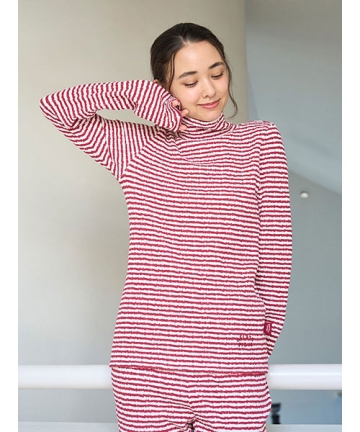 【HOLIDAY】ボーダーふくれジャガードハイネックロンT