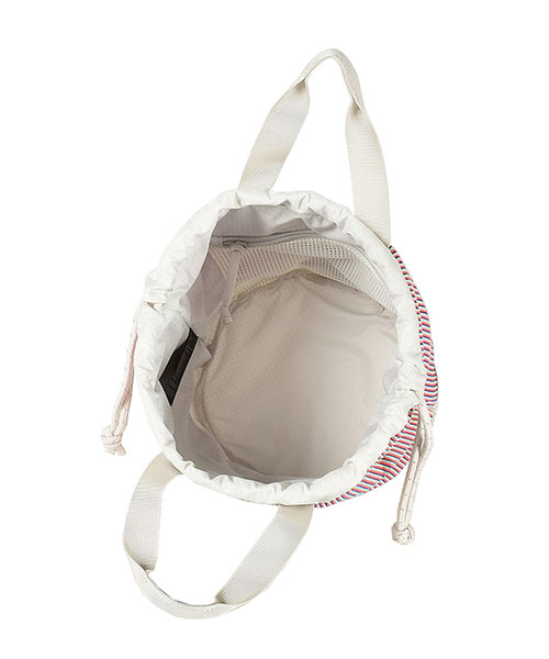 巾着部分のコードを使ってショルダーポーチの様に使うのもよし、ウェビングハンドルでトートバッグの様に使うもよし、この収納力の大きい巾着バッグの使い方は無限大です。●巾着タイプの開口部