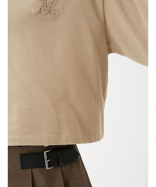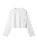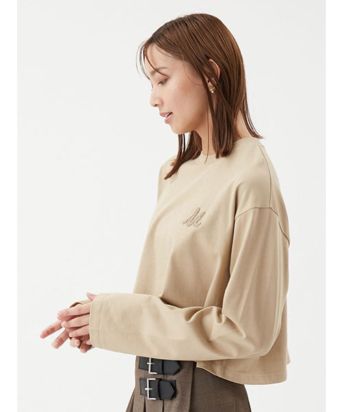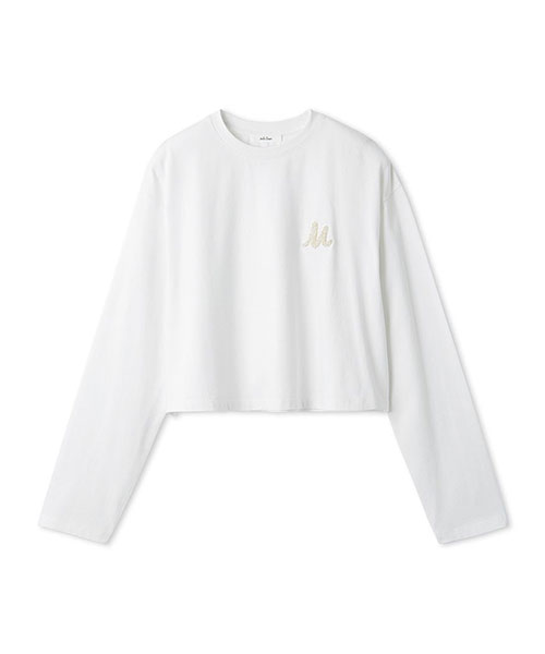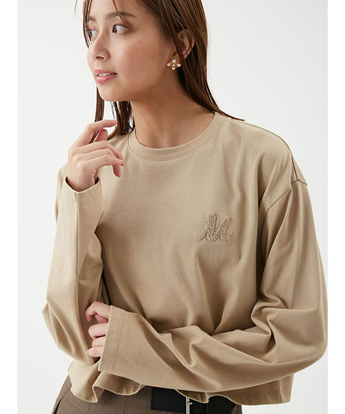 【ロングスリーブTシャツは、今年らしい短丈で。ラメ色の凝ったサガラ刺しゅうがポイント】【Design/Styling】