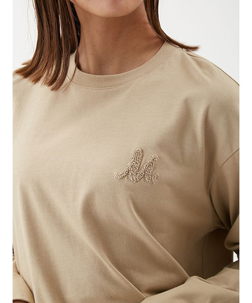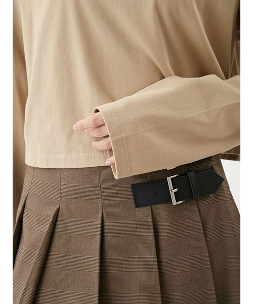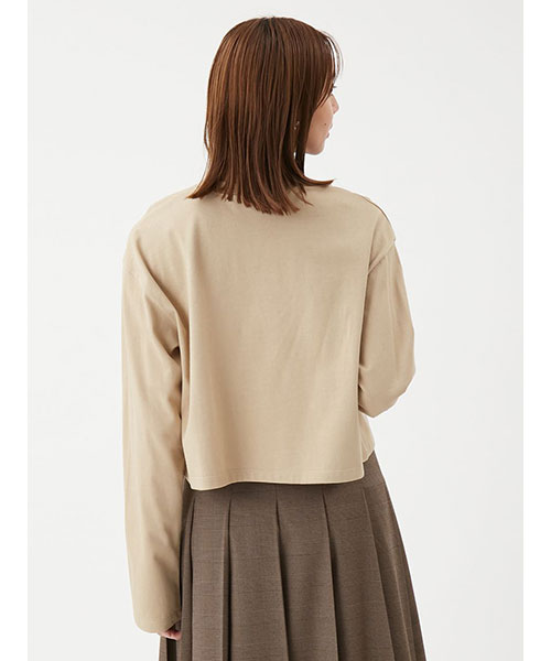 ロングスリーブTシャツを、コーディネーしやすい短丈にし、身幅にワイド感を出した今年らしいシルエットに。