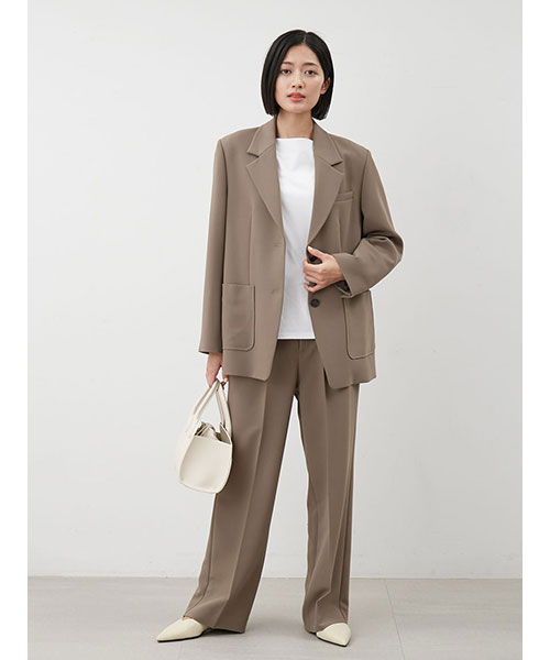 ワンタックストレートパンツ(09WFP254183)と同素材なので、セットアップで着用するモダンなスタイルもおすすめです。