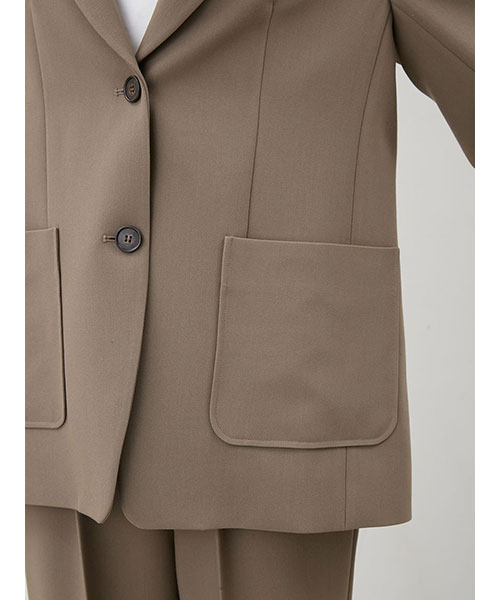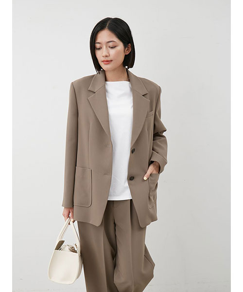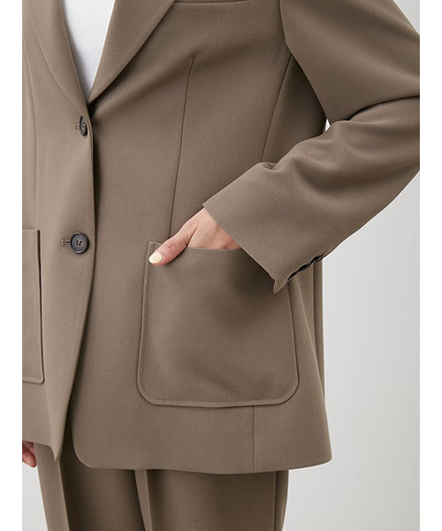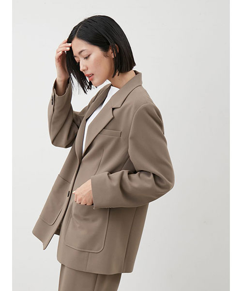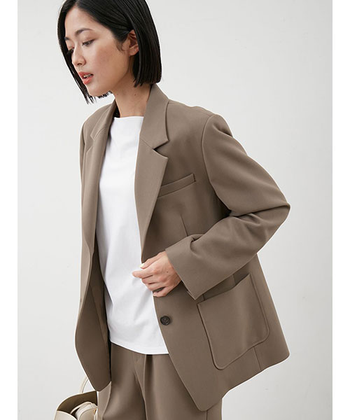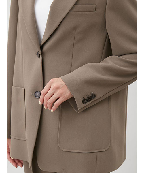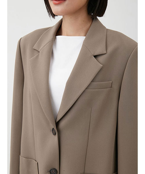 モード感がありつつソフトな印象の、ノッチドラペルのシングルジャケットです。