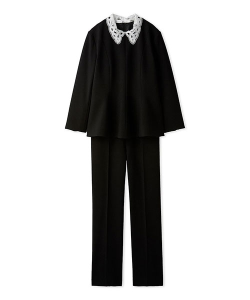 素材 | トップス:【本体】表地ポリエステル73%、レーヨン19%、ポリウレタン8% 裏地ポリエステル100% 【付け衿】レースポリエステル100% パンツ:ポリエステル73%、レーヨン19%、ポリウレタン8% |