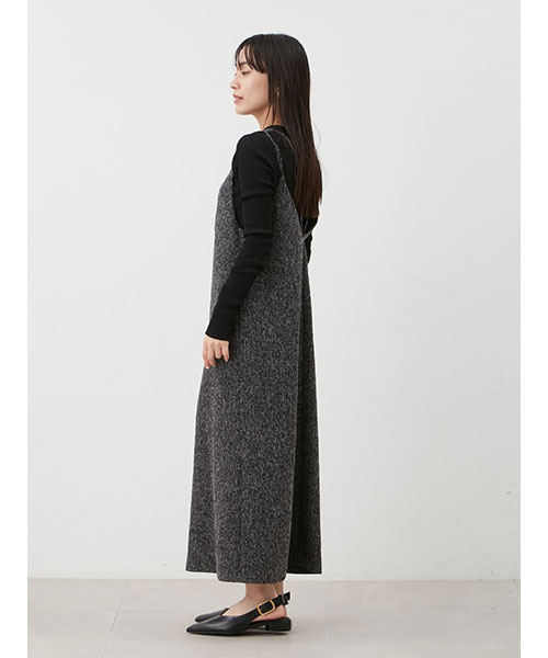 【セットアイテム】クルーネックニット×Aラインキャミレイヤードワンピース