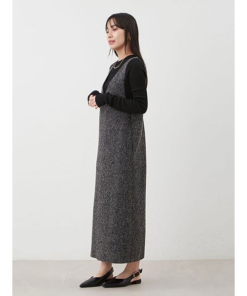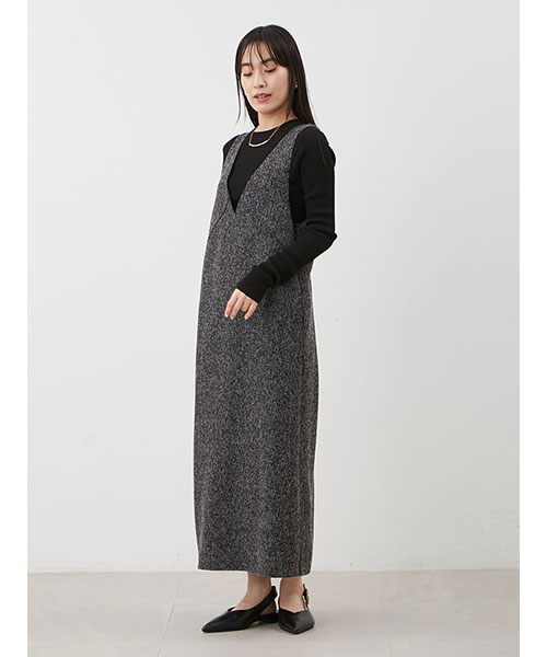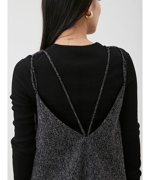 リリースするたびに大好評の、リブニット+ワンピースの2枚セット。今季はトレンドライクな、キャミワンピ風のデザインアイテムをセットしています。