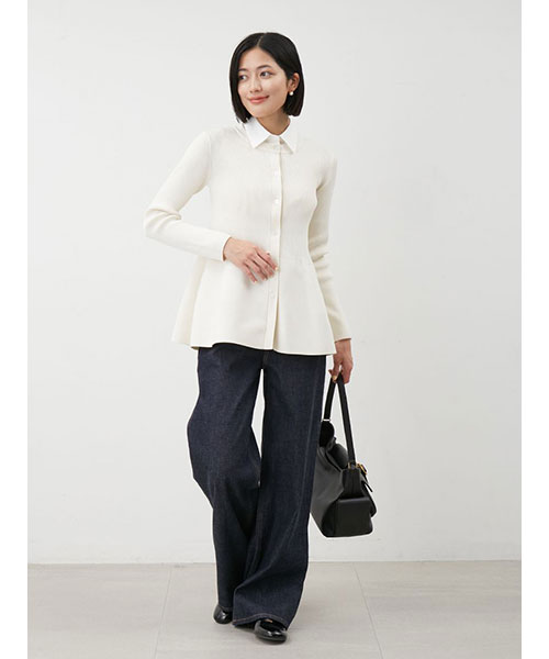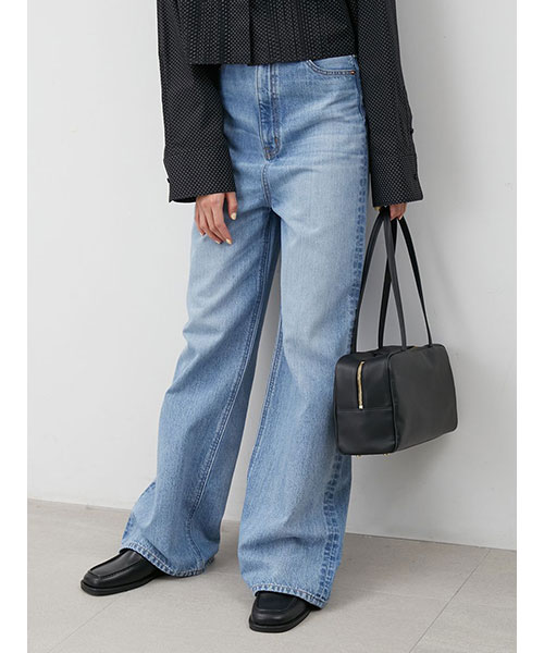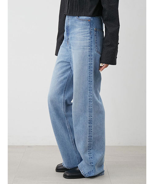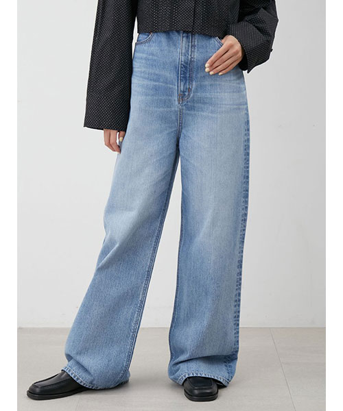 【撥水】【メイドインJAPANファブリック】【脚長美脚シルエットを追究した、ハイウエストのワイドデニムパンツ。パターン、素材共にクオリティを追求】【Design/Styling】