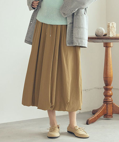 ウエストのドロストデザインで、アスレジャームード溢れるバルーンスカート。