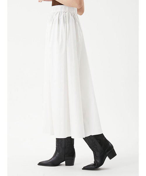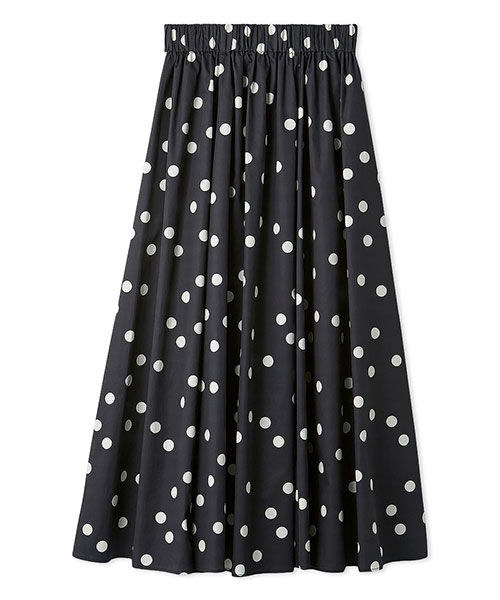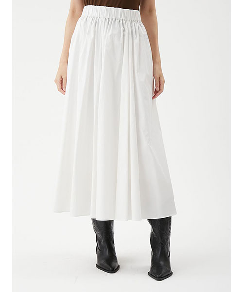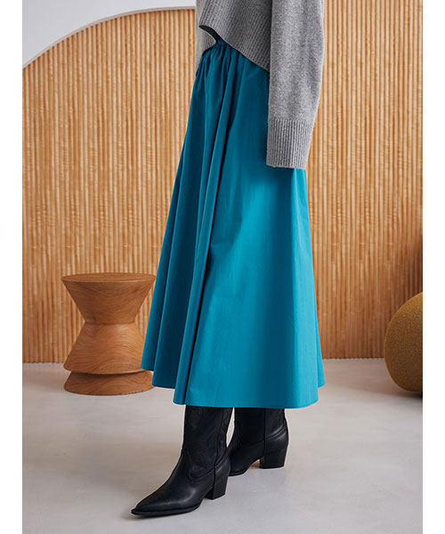 たっぷりと取ったギャザーで、ふんわりと綺麗なフレアシルエットが出るマキシスカートです。