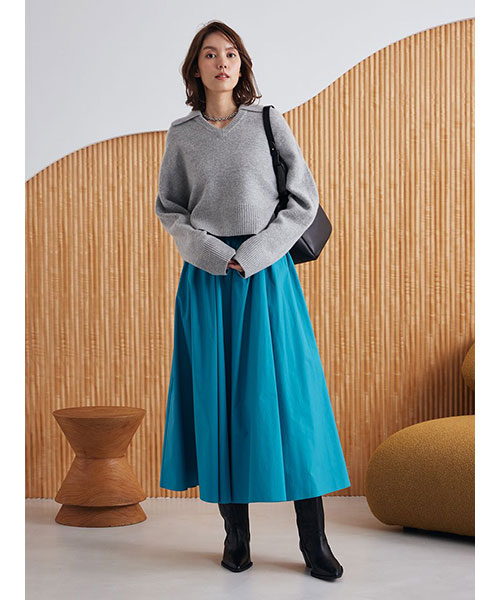 また、今年らしいコンパクトな丈感のアウターやニットなどと合わせても、バランスよくスタイリングできます。