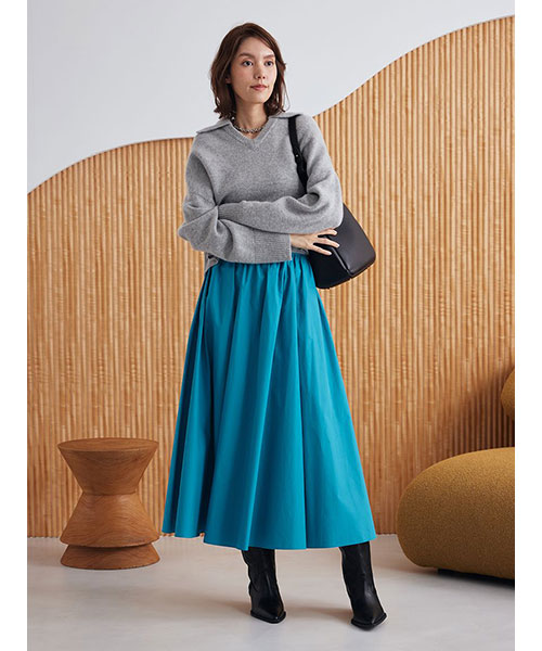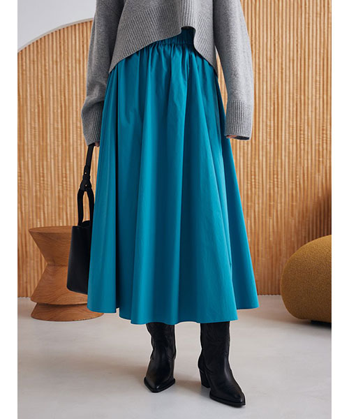 【ふんわりボリュームが華やかな、ウエストゴムのマキシスカート。今期らしいカラーで着こなしの鮮度もアップ】【Design/STyling】