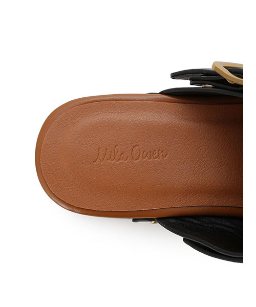 『Mila Owen』のオリジナルサボはベルト付き。ベルトを下げてかかとのストラップとしても履ける、2WAYのタイプです。