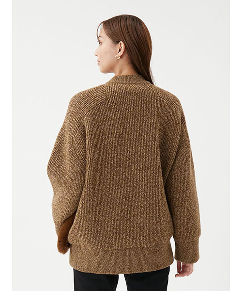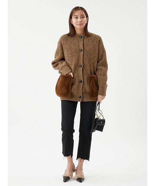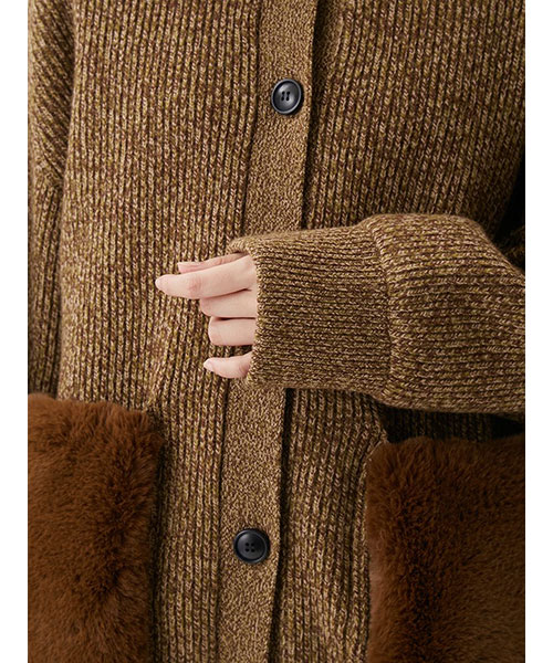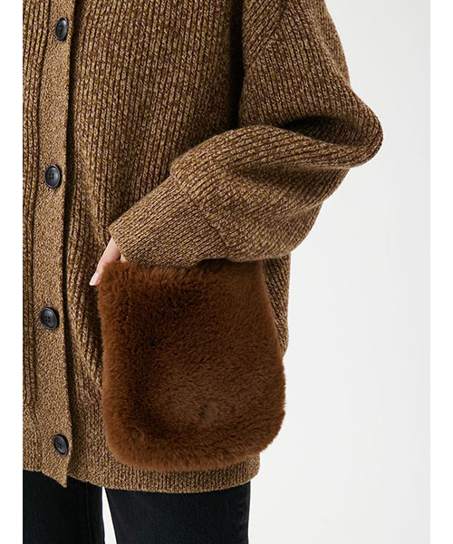 【ファーのポケットを取り外しできる2way。裏地付きでアウター代わりに楽しめるリブ編みカーデ】【Design/Styling】
