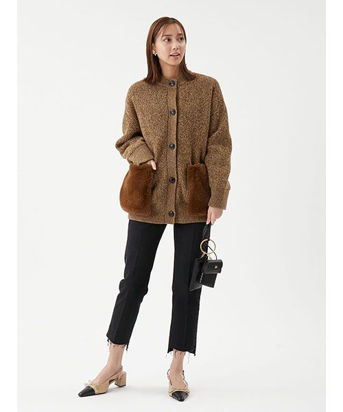 ファーポケットを取り外すと、ニット素材のパッチポケットがあるので、コーディネートに合わせて印象を変化させられます。
