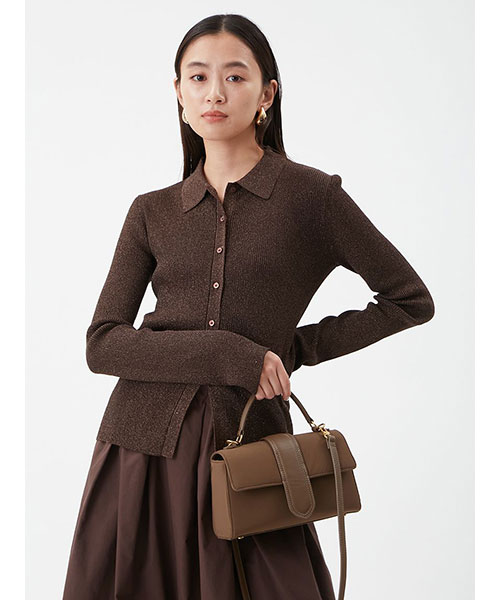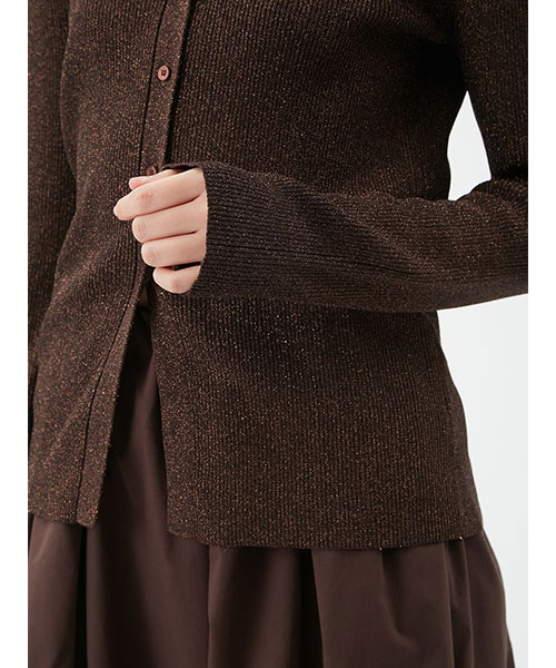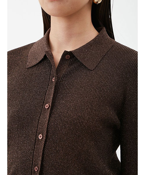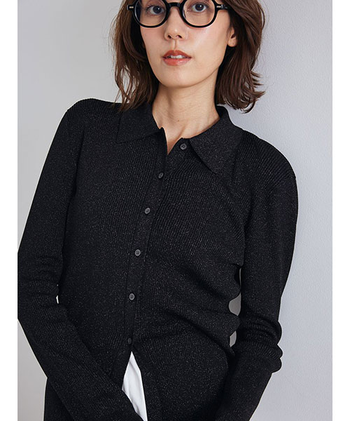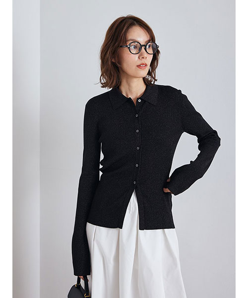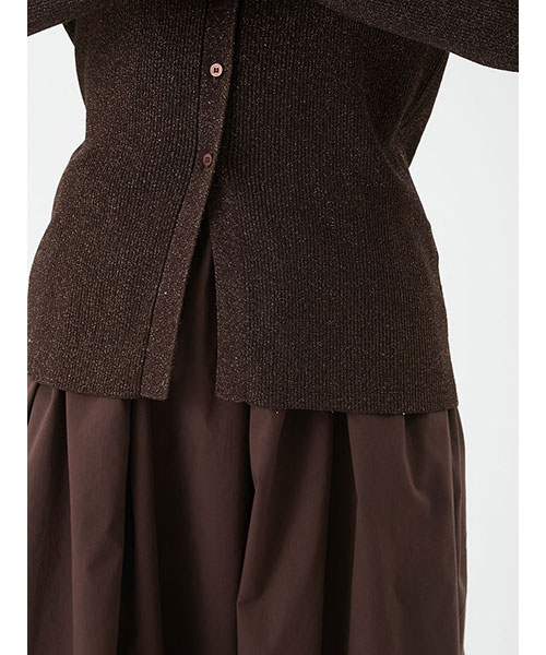 トップスは、上品なラメ糸を使用した、適度な肉感のある編み地。再生繊維を使用したリッチな質感です。