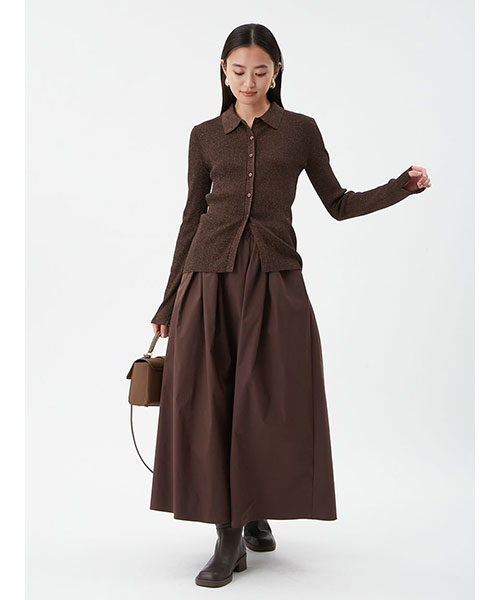 【セットアイテム】ポロ衿ニットタックフレアスカートコーデSET