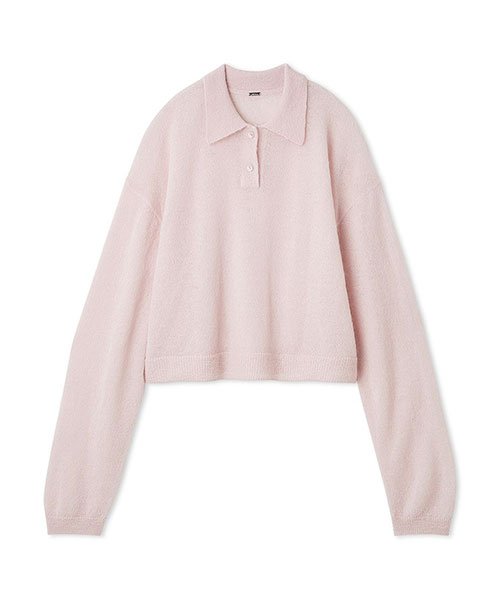 毛足のあるモヘア混の糸を使用した、軽くて柔らかい風合いのポロニット。