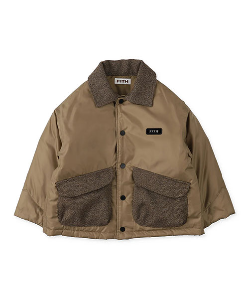 薄目の中綿を裏地キルトし、軽量でありながら保温性もあり動きやすいライトアウターです。身幅とアームホールは大きめに取りインナーが厚めでもゴワつきにくいです。衿とポケットはウールライクな異素材を使用し温かみをプラスしました。■素材