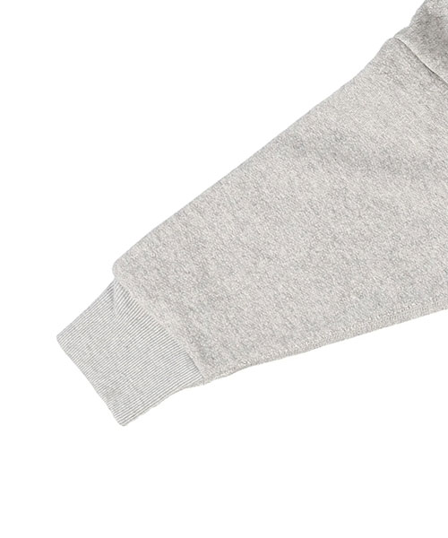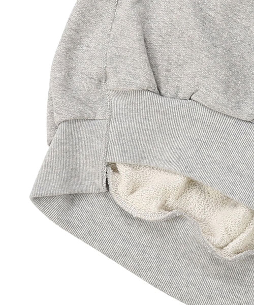 和歌山県で編み立てられた日本製の裏毛素材です。表糸には30番手の杢糸、中糸に20番手、裏糸ループ部分には8番手を使用。通常よりもザックリとしたゲージで編むことで、表情豊かで風合いのある生地に仕上げています。