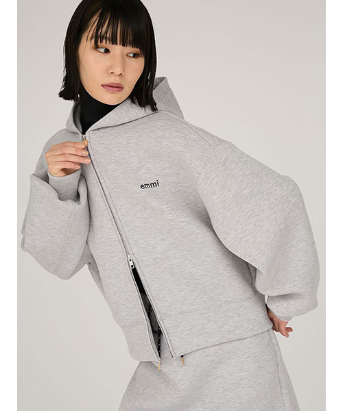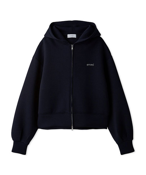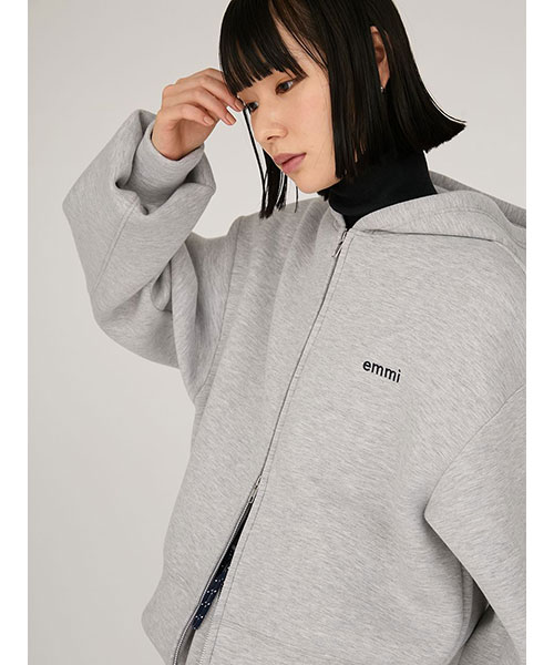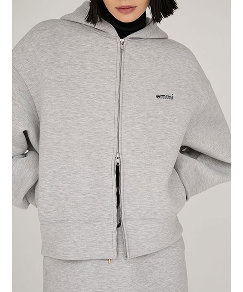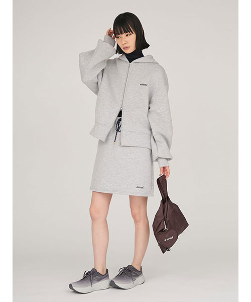 emmi定番のジップアップダンボールフーディーにemmiロゴ刺繍を施し、デザインをアップデート。身幅も少しゆとりを持たせ、女性らしさとスポーティーさがマッチするデザインに仕上げました。■Coordinate