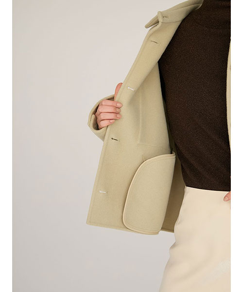 昨年ご好評をいただいた“ロイヤルジーロン”素材を使用したミドルコートが登場。まるでカシミヤのような風合いが魅力で、軽く羽織りやすい仕上がりになっています。■Coordinate