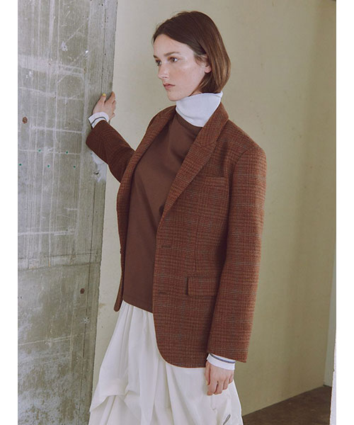 クラシカルでマニッシュな雰囲気のチェックジャケットは数種類の色の糸を用いて織られた柄で奥行きのある色の見え方が魅力です。肩がドロップするオーバーサイズなデザインでエフォートレスな着こなしが叶います。トレンドのBRWと合わせやすいDGRYの2カラー展開。