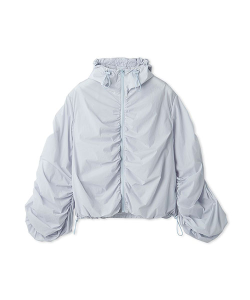 セミシアーのスポーティーな素材にemmiらしいギャザーディテールを身頃、袖にたっぷりとデザインしました。軽く、畳んでもシワになりにくくアウトドアシーンにもトラベルにも長いシーズンで活躍するブルゾン。