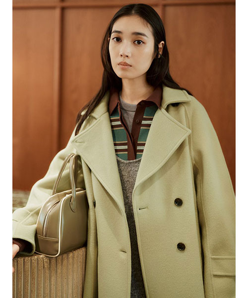 前立ての釦を全て閉めてプルオーバーとしての着こなしはもちろん、しっかりめの編地を採用しているためインナー次第では軽アウターとしても活用いただけます。