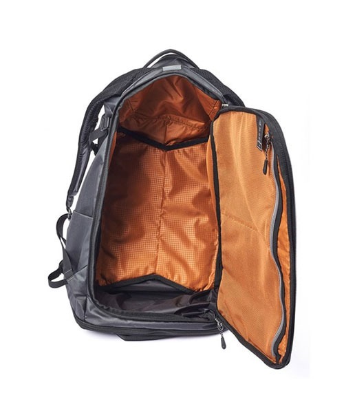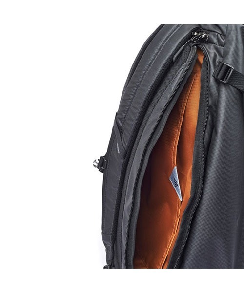 コンパス40(COMPASS40)は、頭上の荷物棚に乗せやすい機内持ち込み用ダッフルバッグのデザインに、バックパックの機動力を加えて、アクティブな通勤、週末のお出掛け、出張に最適なパックとなりました。パッド付きノートPCスリーブと整理用メッシュポケットを搭載し、ビジネスとプライベートのアイテムが混ざるのを防ぎます。また伸縮性の内部仕切りパネルが、汚れた服、ジム用品や自転車用シューズで内側の荷物が汚れるのを防ぎます。●つかみやすいトップのグラブハンドル