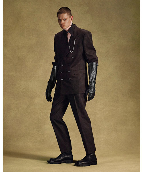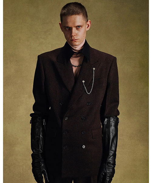1940年代のドイツ海軍の制服をベースにデザインされた、8つボタンのピークドラペルダブルジャケット。ややウエストにシェイプの効いたボックスシルエット。