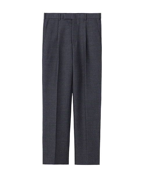 細身のきれいなテーパードラインの1タックトラウザーズ。太めの糸番手を使用した、高密度ウールギャバジンを使用。