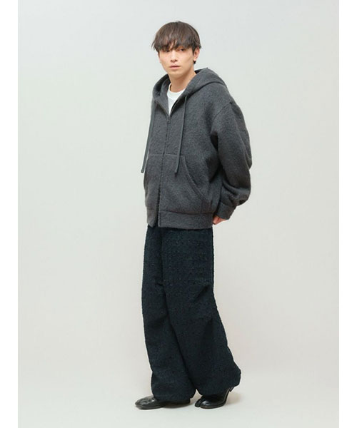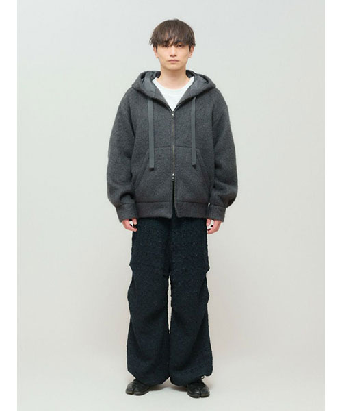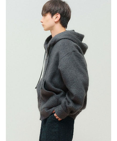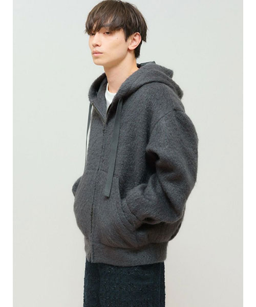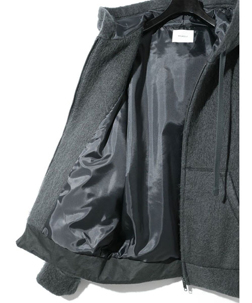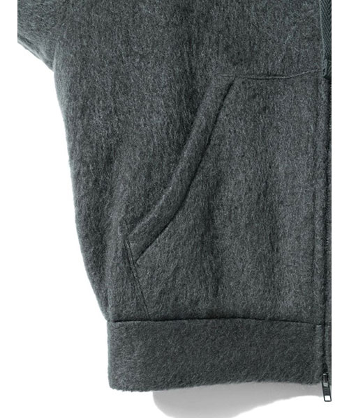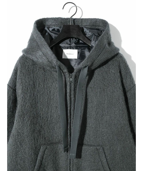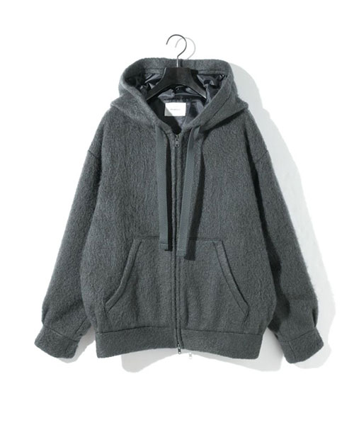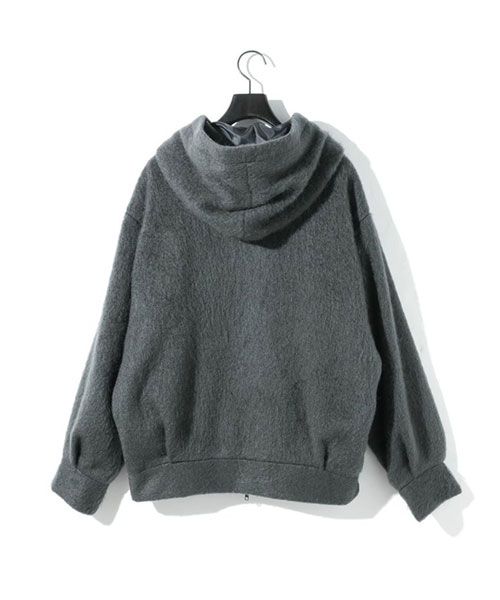 季節の変わり目に重宝するシャギージップアップパーカーです。ゆったりとしたシルエットで中に着こみやすいサイズ感を表現しました。裾を絞り目に仕上げています。滑りの良い総裏地になっており、上下可動のWファスナーを使用しております。フード紐はMIDIUMISOLIDらしい太目の絞り紐が付いています。シンプルでベーシックな大人のパーカーを演出した1枚です。同シリーズ3-171011/シャギーコーチジャケットも展開。