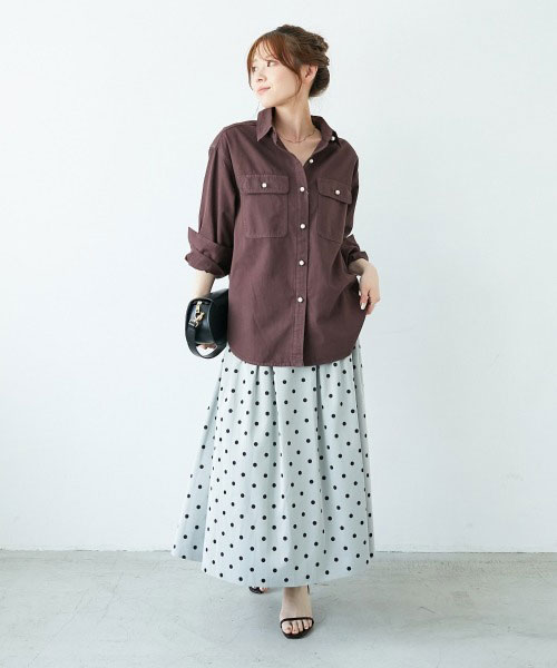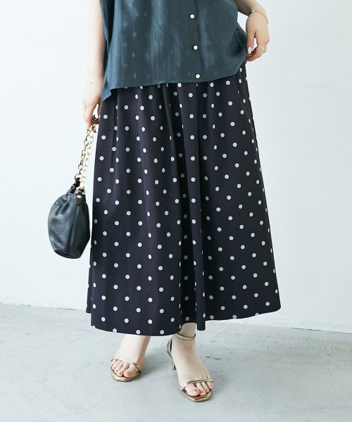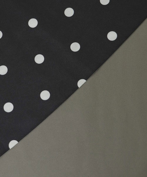 シーズンレスで使えるドット柄と、合わせやすいダークカラーが表裏で楽しめます。