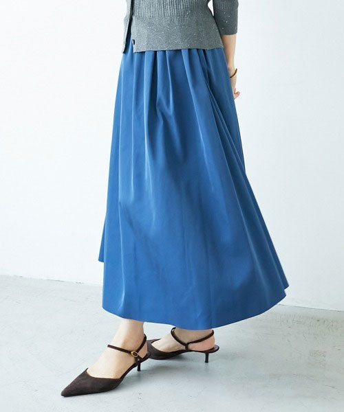 程よいハリ感のタフタ素材で、華やかなボリューム感はありながら、広がり過ぎないシルエットに仕上げました。
