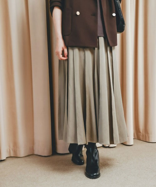 パネルプリーツのデザインが新鮮なスカート。●ポイント