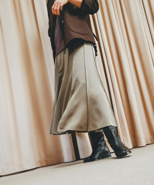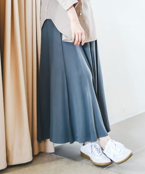 《手洗い可能》フィブリルサテンパネルプリーツスカート
