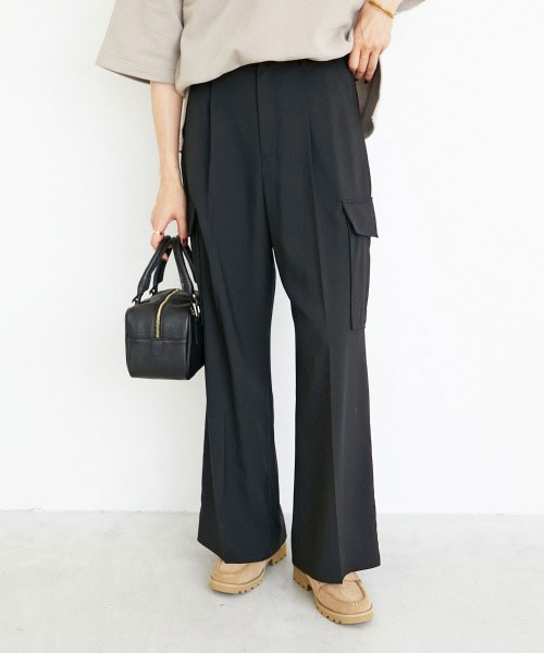 ややワイドなシルエットにセンタープレスを入れカジュアルになりすぎないのがポイントです。