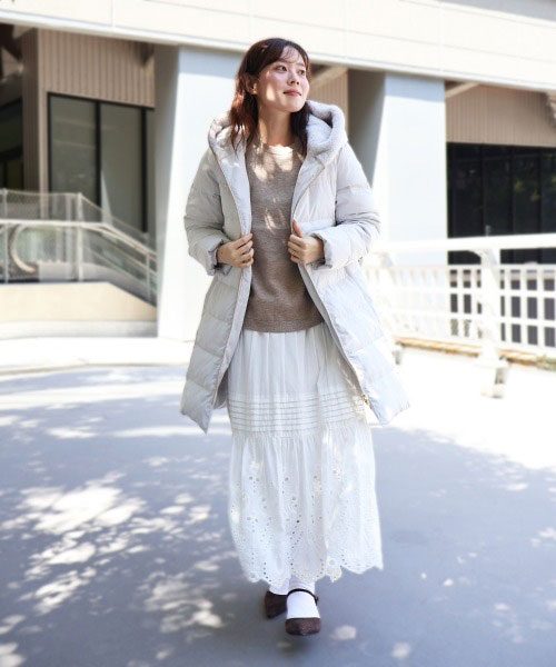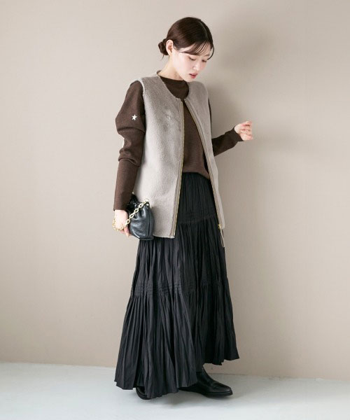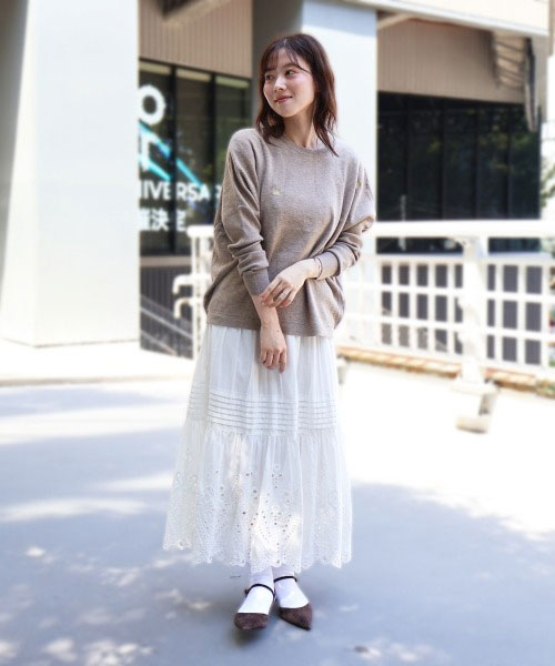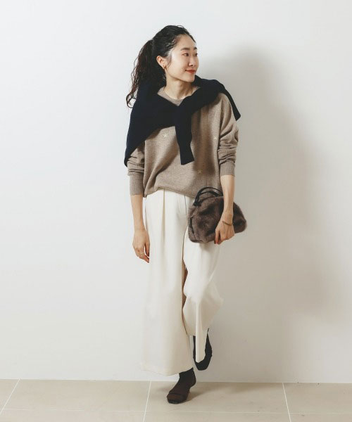 パンツと合わせてカジュアルに、スカートと合わせて女性らしくと、スタイリング次第で印象が変わるのも魅力。