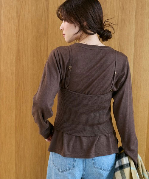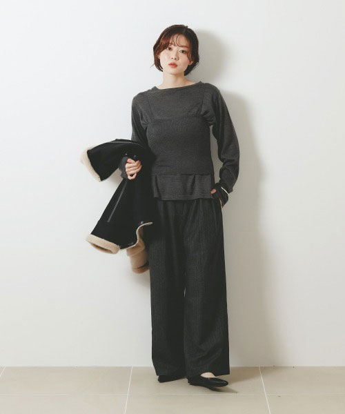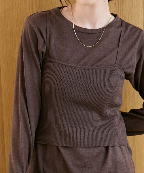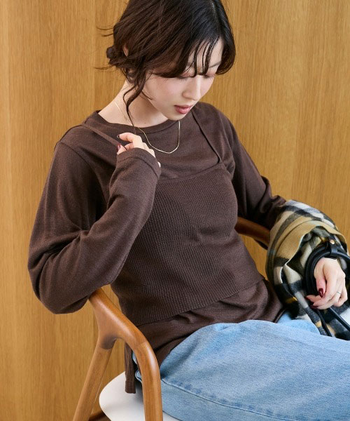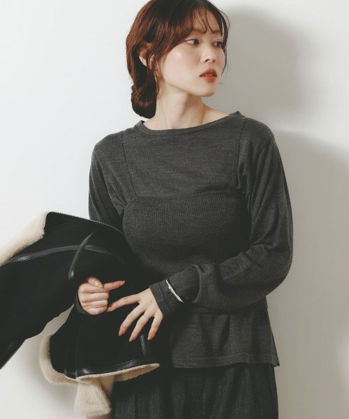 スタイリングのポイント使いにぴったりなニットビスチェと、長袖ニットトップスのアンサンブルアイテム。単品使いはもちろん、簡単にこなれ感のあるレイヤードスタイルが完成します。