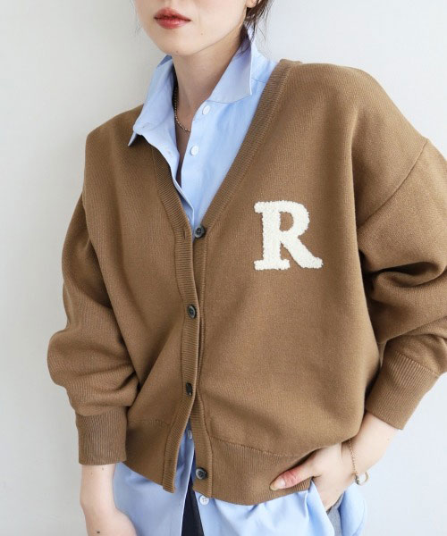 サガラ刺繍のワンポイントロゴが際立つVネックカーディガン。ベーシックなVネックカーディガンにワンポイントとなるロゴのサガラ刺繍を施しました。