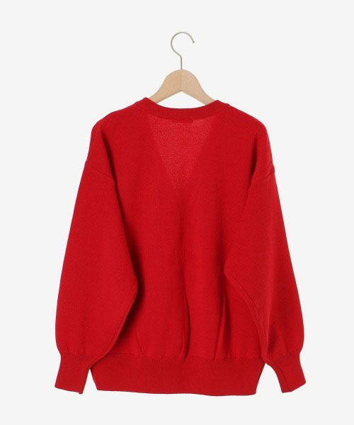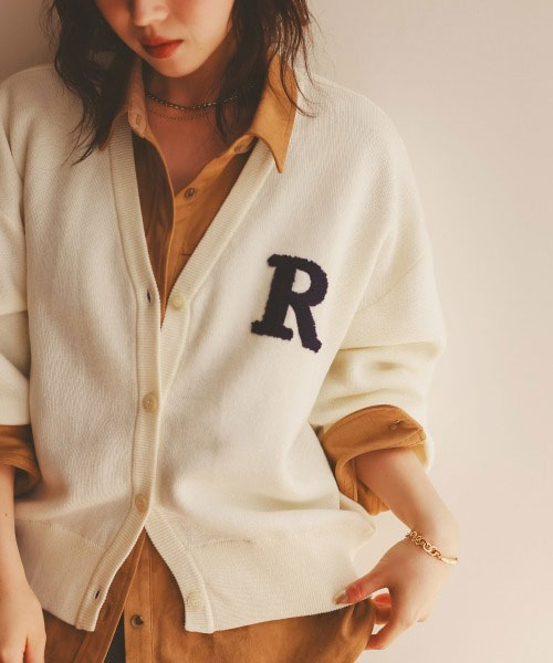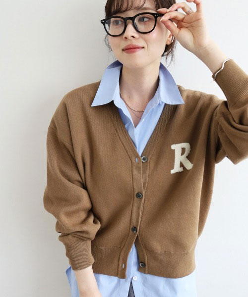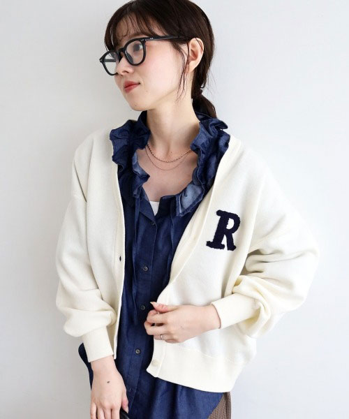 サガラ刺繍のワンポイントロゴが際立つVネックカーディガン。ベーシックなVネックカーディガンにワンポイントとなるロゴのサガラ刺繍を施しました。