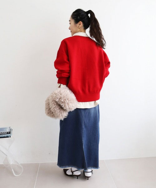 ドロップショルダー、ゆったりとしたサイジングが今っぽい印象に。