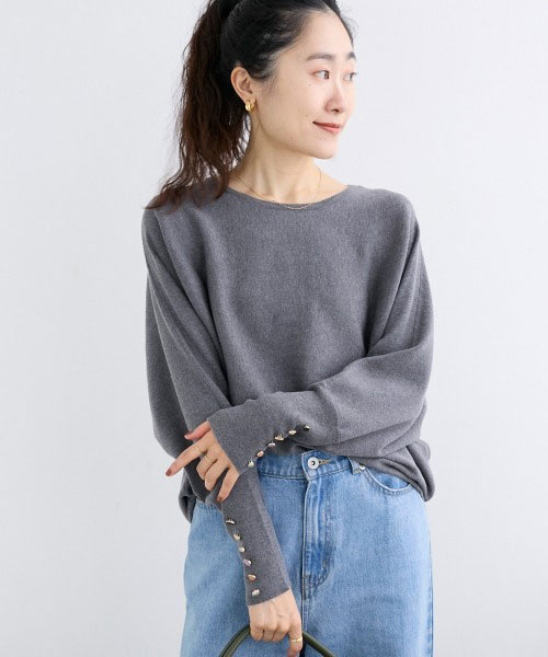 袖に施した多色使いのジュエリー調ボタンがアクセントになるので1枚での着用はもちろん