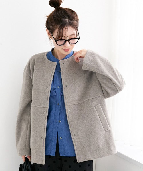 ニットビーバーノーカラーミドルコート