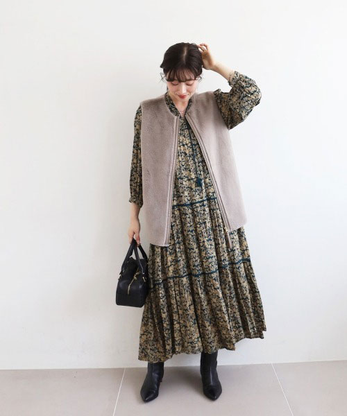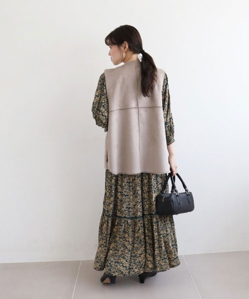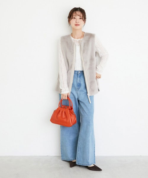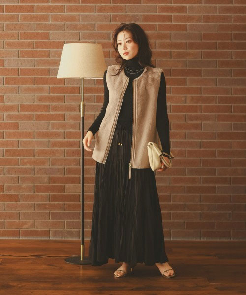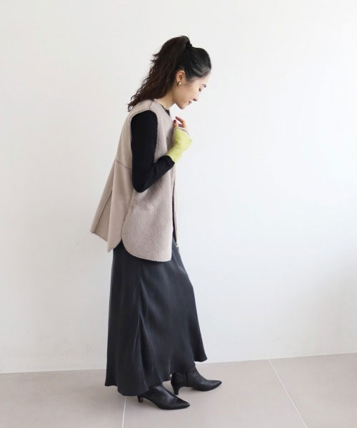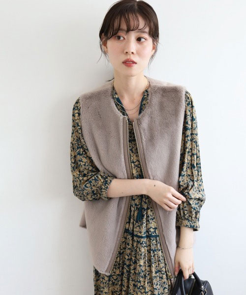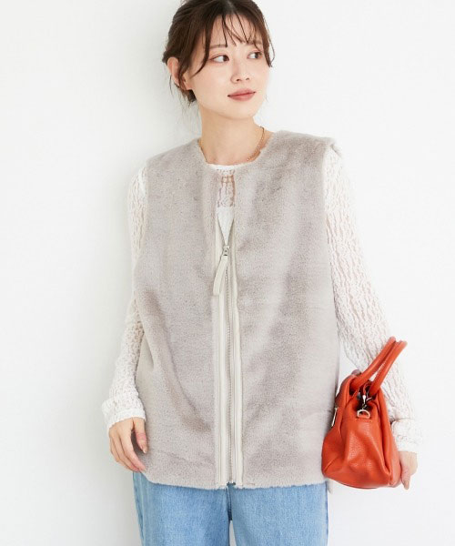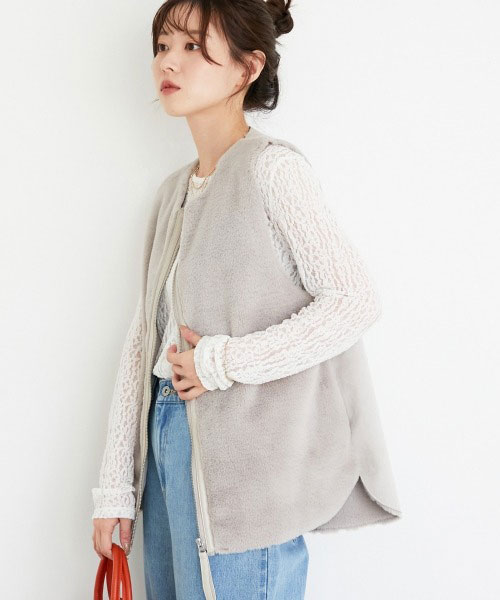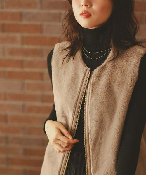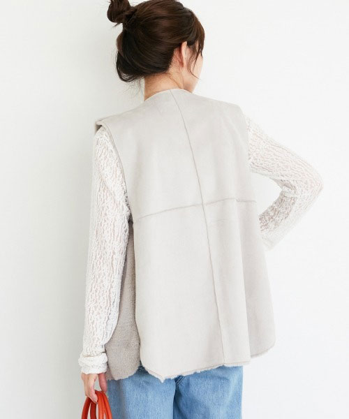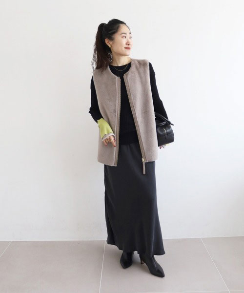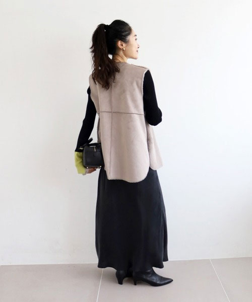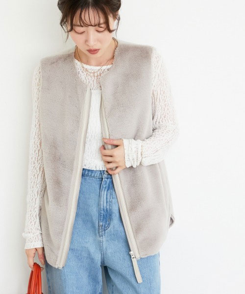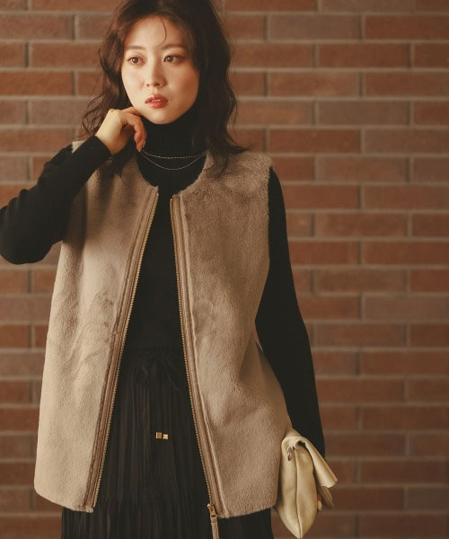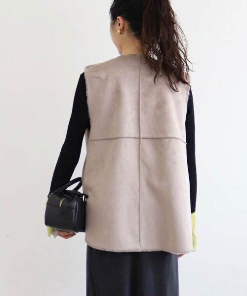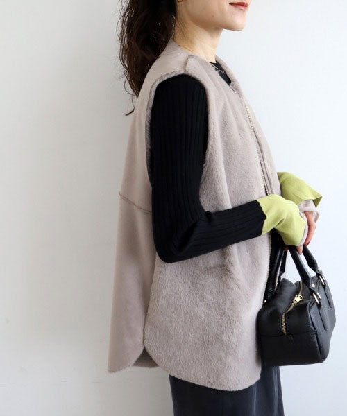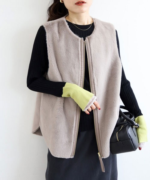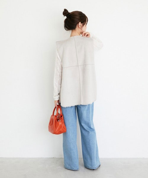 ショルダーのファーとムートンの切り替え位置にもこだわり、すっきり見えるシルエットになっています。