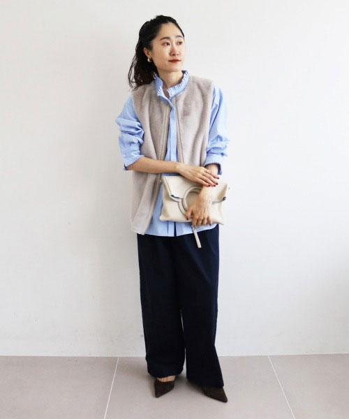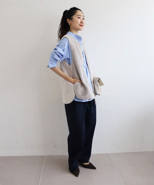 シャツ、ニットとインナーを変えれば長く楽しんで頂けるアイテムです。