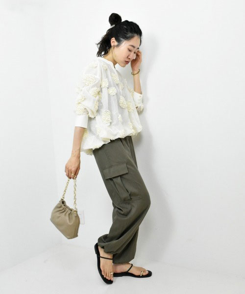 ボリューム感がありながら、裾はギャザーを入れることで、ワイドパンツ等幅広いボトムと好相性◎