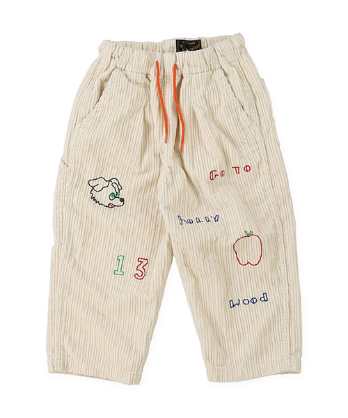 手刺繍の様な柔らかい刺し方の刺繍と立体感のある親子コーデュロイかわいらしいぬくもりのあるワークパンツ。32580205のエンジニアジャケットとセットアップです。■仕様