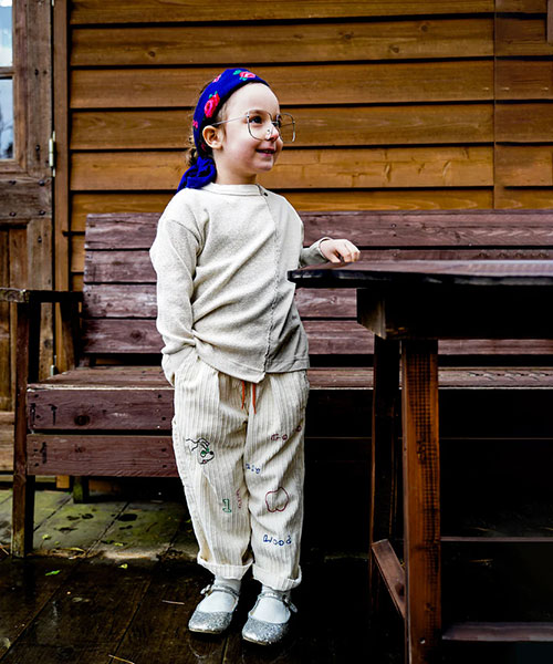 手刺繍の様な柔らかい刺し方の刺繍と立体感のある親子コーデュロイかわいらしいぬくもりのあるワークパンツ。32580205のエンジニアジャケットとセットアップです。■仕様