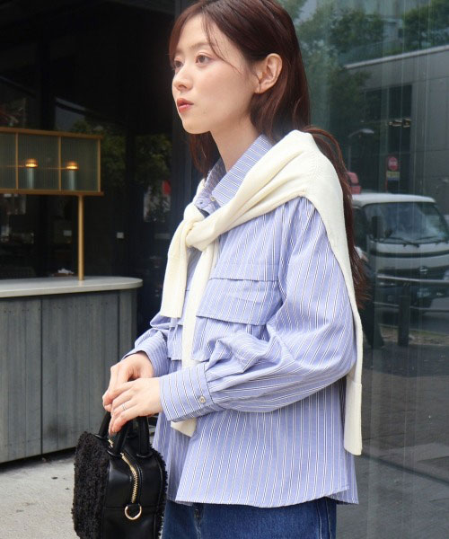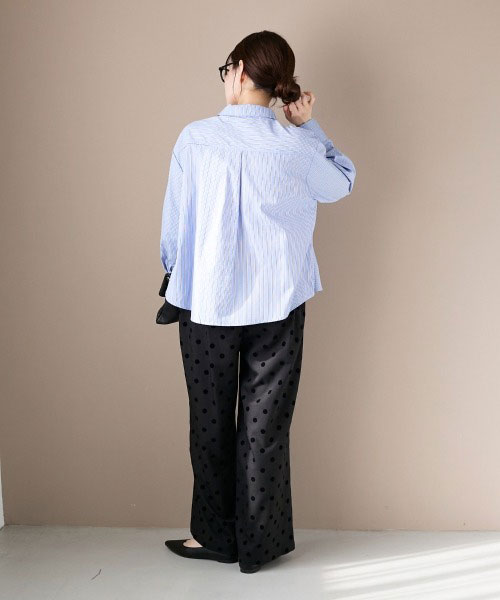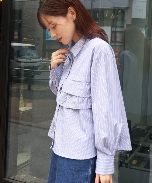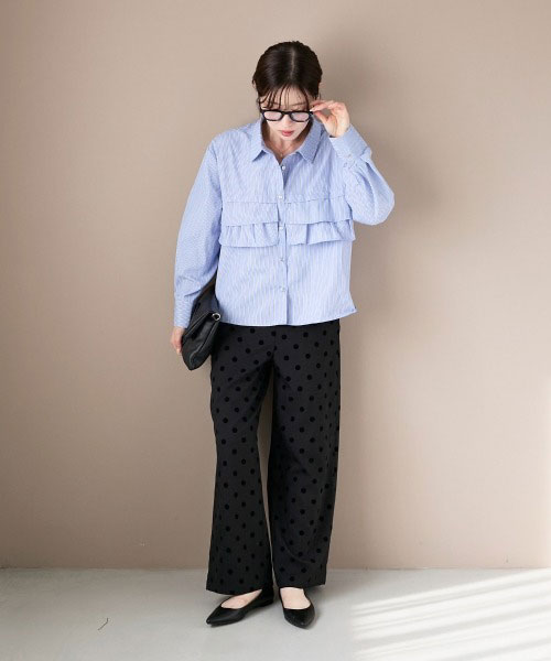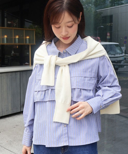《WEB・一部店舗限定》AL ストライプフロントフリルブラウス