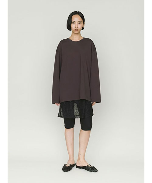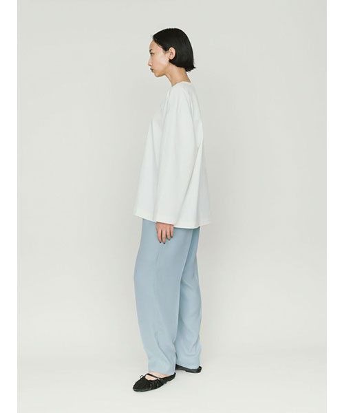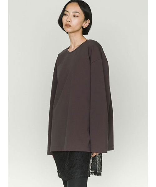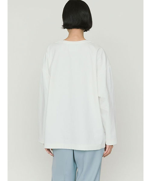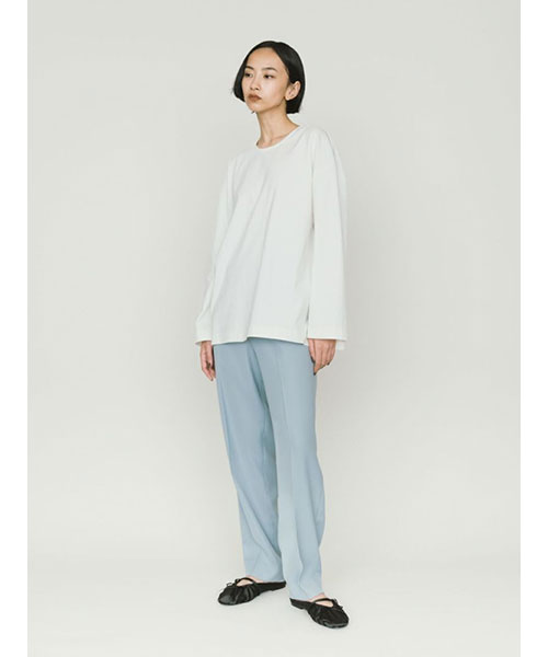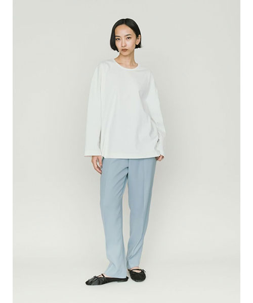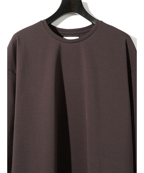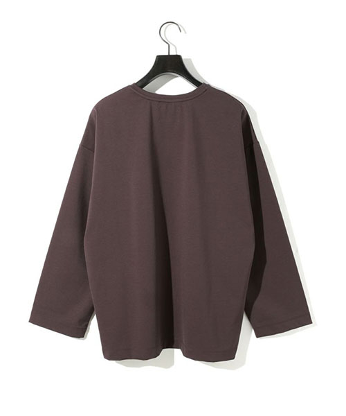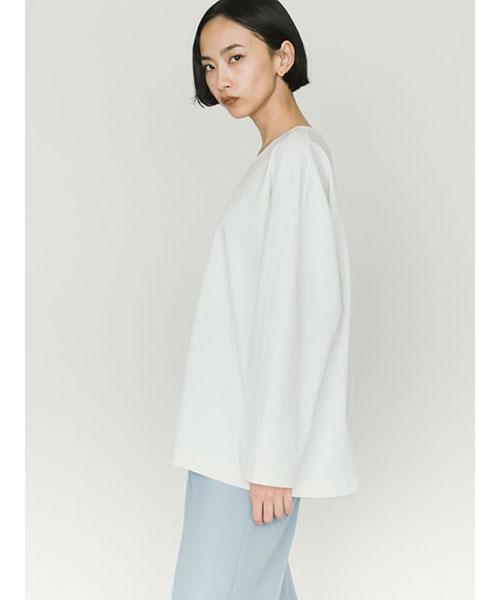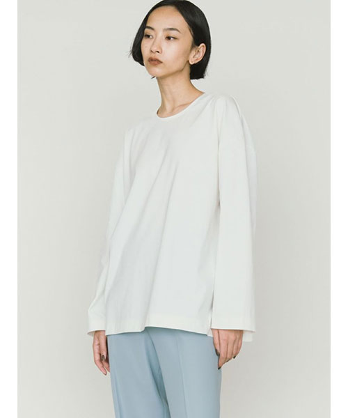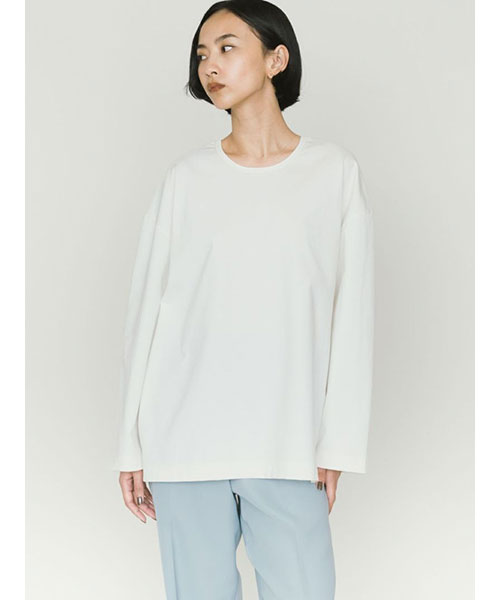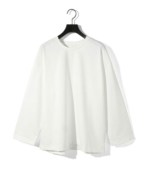 肉感のあるコットンポンチ素材を使用したストレートスリーブワイドプルオーバーです。すべすべの肌触りが特徴的。カットソーだけどきれい目なデザインを表現しており、シンプルに着回しのできるアイテムとなっています。袖幅広めで抜け感があります。ストレッチもきいているので動きやすいのもポイント。インナー使いに役立つ1枚です。Point